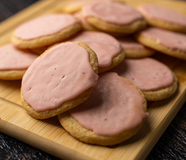 A super soft sugar cookie base with a sweet strawberry glaze. This isn’t like any strawberry cookie you’ve ever tasted!